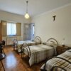 Quarto partilhado com três camas de solteiro e casa de banho.